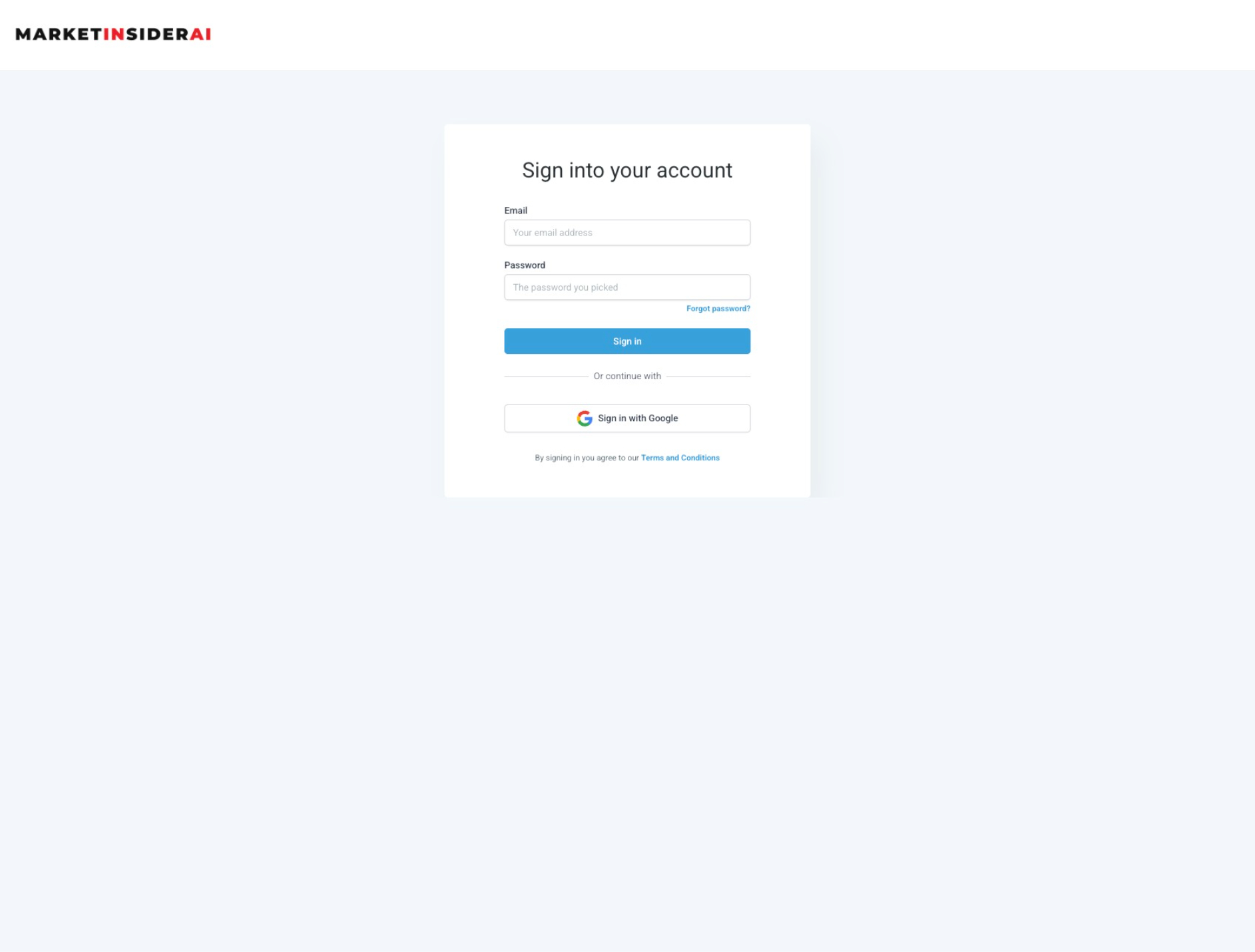 Login to MarketInsiderAI with your login credentials